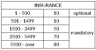 The cost of insurance depends on the value of your order. Insurance costs are listed below.