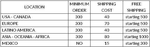 | Asia – Oceania – Africa | $80 | Orders over $1,500 |